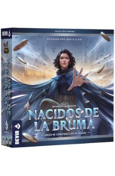 Diseñado por John D. Clair (Ready Set Bet, Space Base) e ilustrado por David Álvarez Astruga, Valeria Casale y Logan Feliciano, en Nacidos de la Bruma, el juego de construcción de mazos, poco a poco iremos mejorando nuestro mazo personal de cartas adquiriendo nuevas y poderosas cartas de un mercado central. En nuestro turno, quemaremos distintos metales para activar los poderes de las cartas y conseguir múltiples efectos, como infligir daño o avanzar en marcadores de misión.