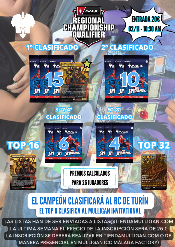 1º:  Plaza para el siguiente Reginonal Championahip + 15 Sobres de SpidermanxMTG +Jasper Flint Foil Promo